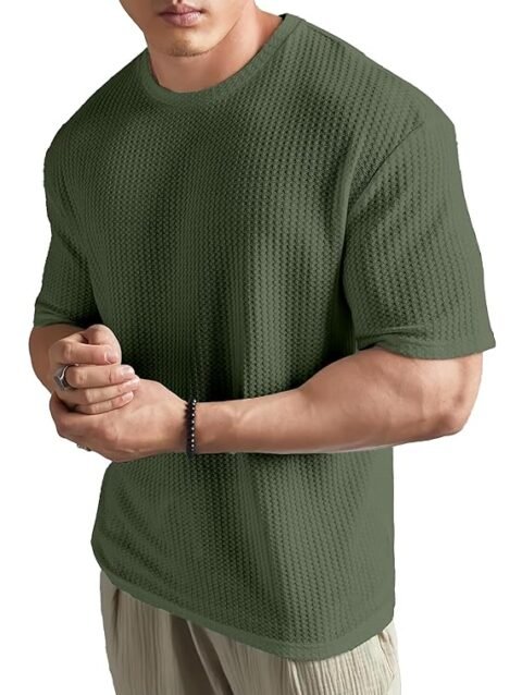 SHODOX Mens Solid Dotted Unique Design Oversized Tshirt for Men – Round Neck Loose Fit Drop Shoulder Mens T-Shirt