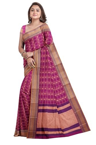 SENSAN Women’s Kanchi Cotton Saree with Blouse Piece [SKU:754] (Magenta)