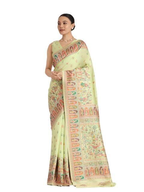 Monjolika Fashion Women’s Pashmina Silk Gold Zari Woven Saree With Unstitched Blouse Piece (55706_ Color) (Pista Green)