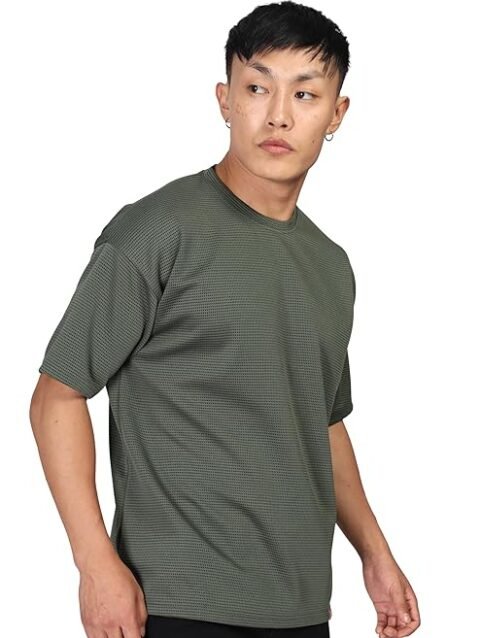 SHODOX Mens Solid Dotted Unique Design Oversized Tshirt for Men – Round Neck Loose Fit Drop Shoulder Mens T-Shirt
