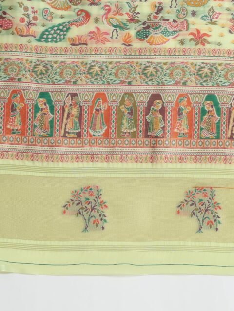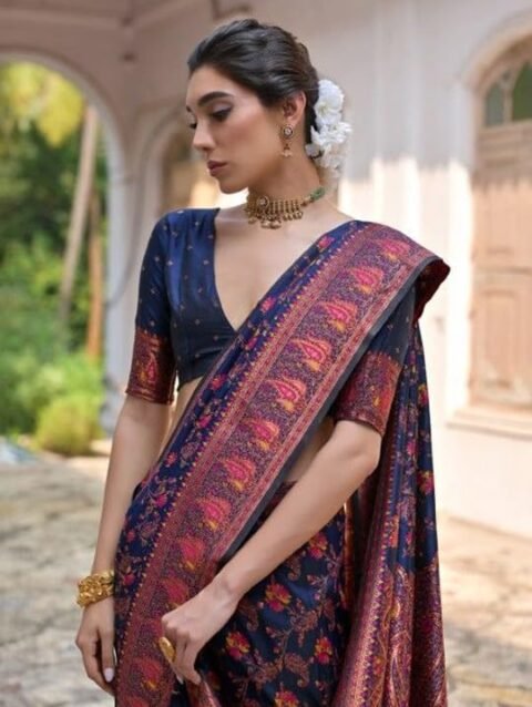 Monjolika Fashion Women’s Pashmina Silk Gold Zari Woven Saree With Unstitched Blouse Piece (55706_ Color) (Pista Green)