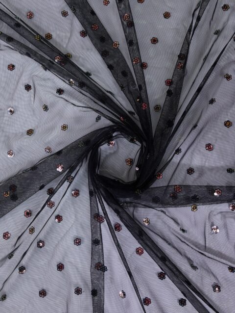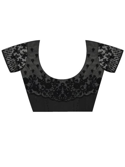 Monjolika Fashion Women’s Soft Net Saree with Sequin Embellished Border and Pallu With Unstitched Blouse Piece (Black)
