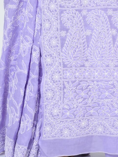HerClozet Lucknow Chikankari Pure Cotton Saree for women 6.3 Mtr(Lavender)