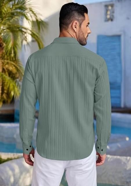 CB-COLEBROOK Men’s Casual Button Down Shirts Long Sleeve Linen Shirt Fashion Textured Beach Summer Shirts