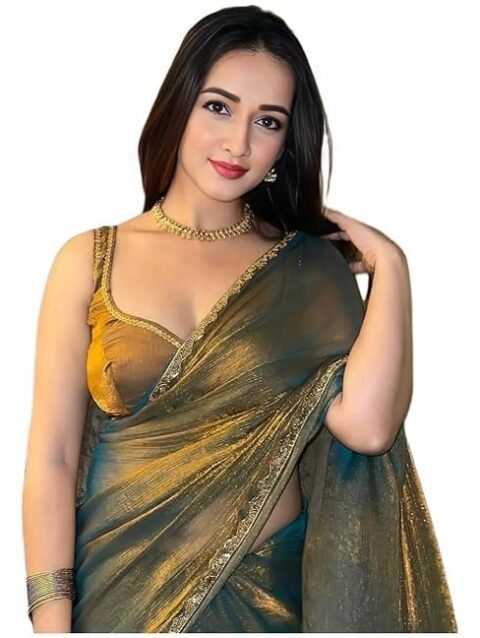 AKHILAM Women’s Heavy Georgette Sequence Work Saree With Unstitched Blouse Piece