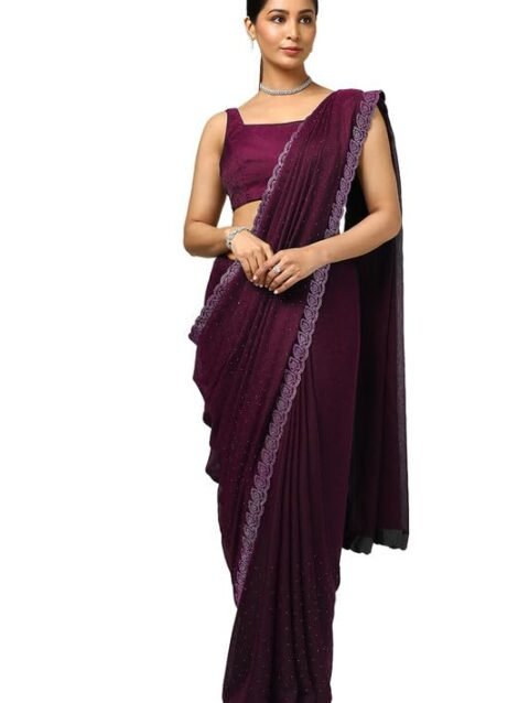 Soch Womens Wine Chiffon Floral Print Saree With Stone Work