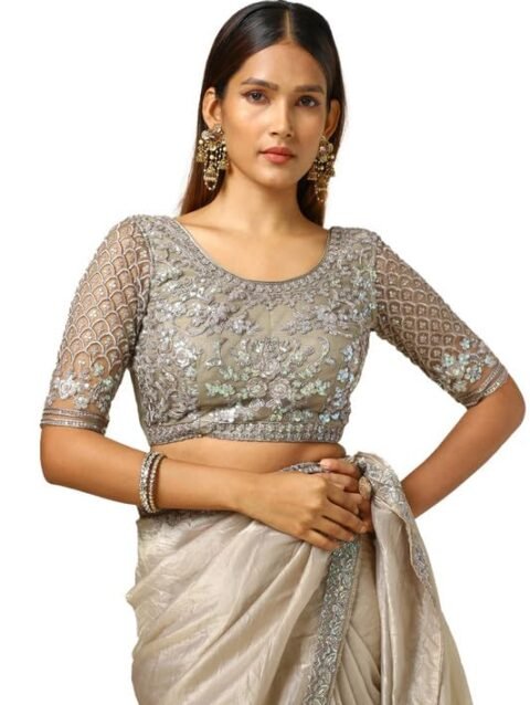 Soch Womens Beige Organza Embroidered Saree With Sequins