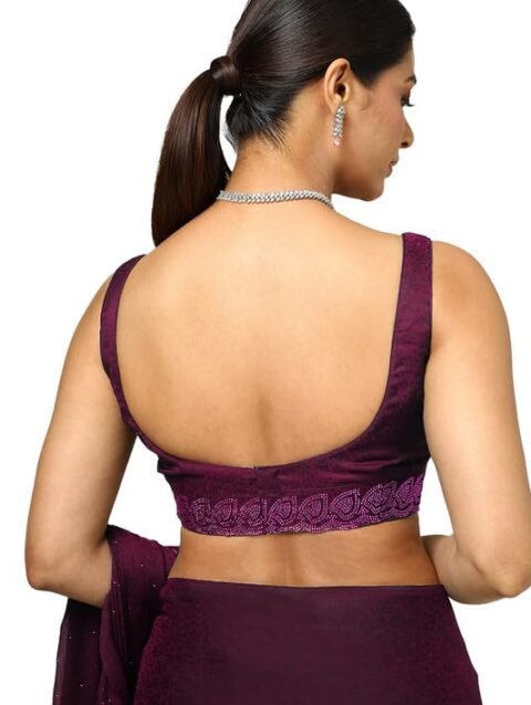 Soch Womens Wine Chiffon Floral Print Saree With Stone Work