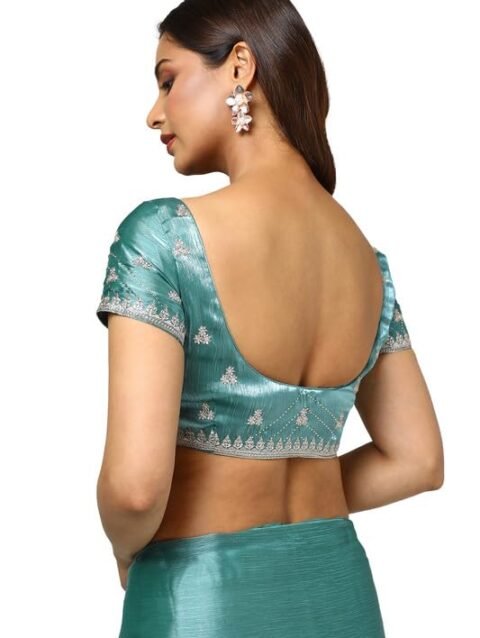 Soch Womens Teal Organza Embroidered Saree With Stone Work
