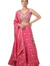 ADHIA Women’s Embroidered Lehenga Choli with Dupatta | Silk Blend Wedding Lehenga Set | Traditional Indian Dress (Lehenga, Dupatta, Blouse, Queen pink, Size – L)