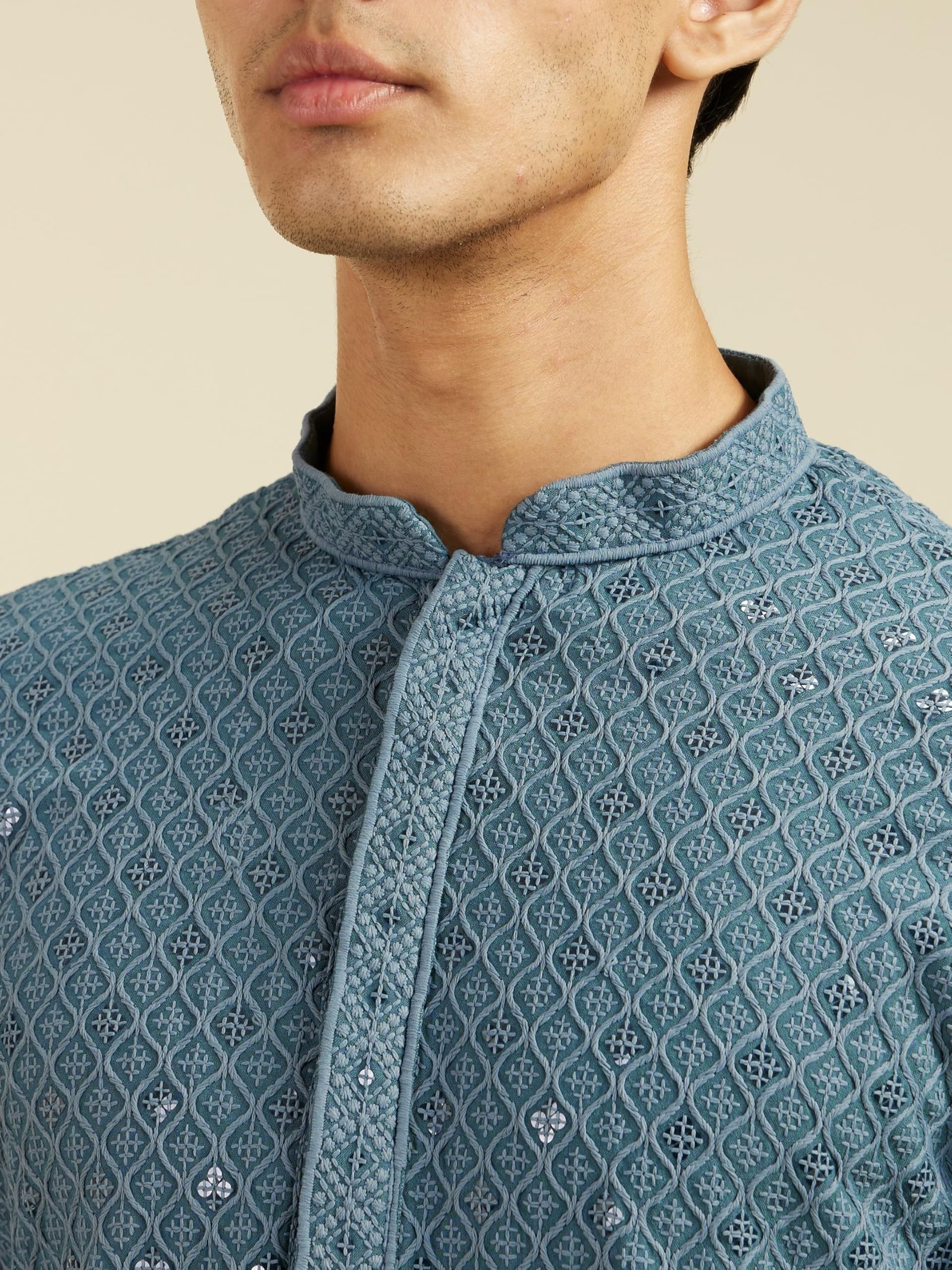 DIWAS BY MANYAVAR Men’s Viscose Embroidery|Sequin Work Kurta (Greyish Blue,S)