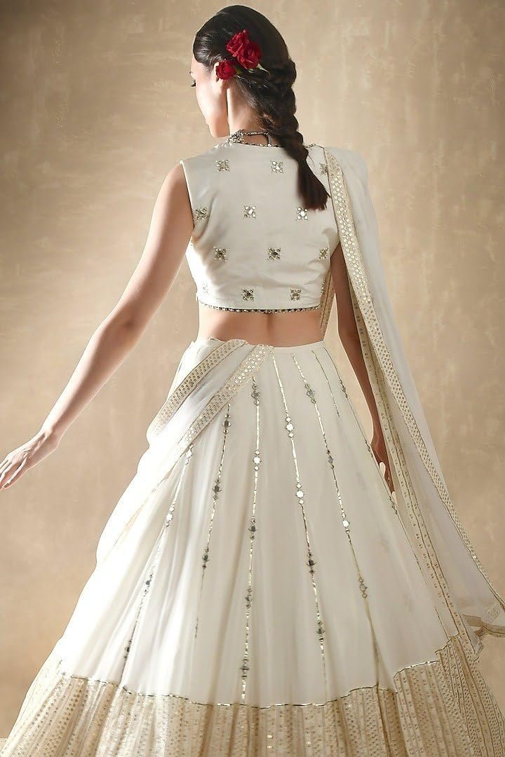 Georgette Girl’s Fashion Hub’s Off White Color Bridal Semi-Stitched Lehenga Choli With Dupatta Set For Wedding, Party, Evening, Free Size