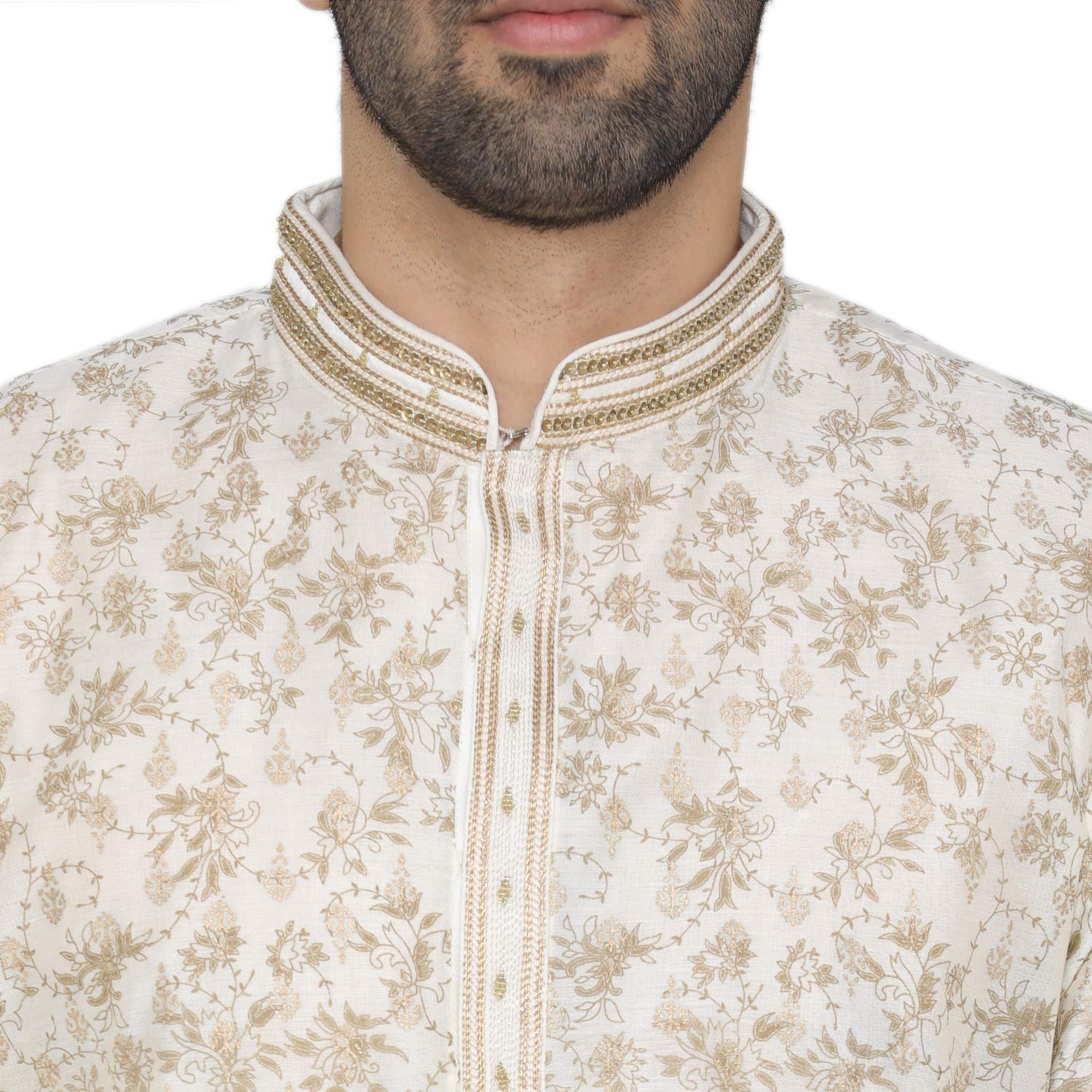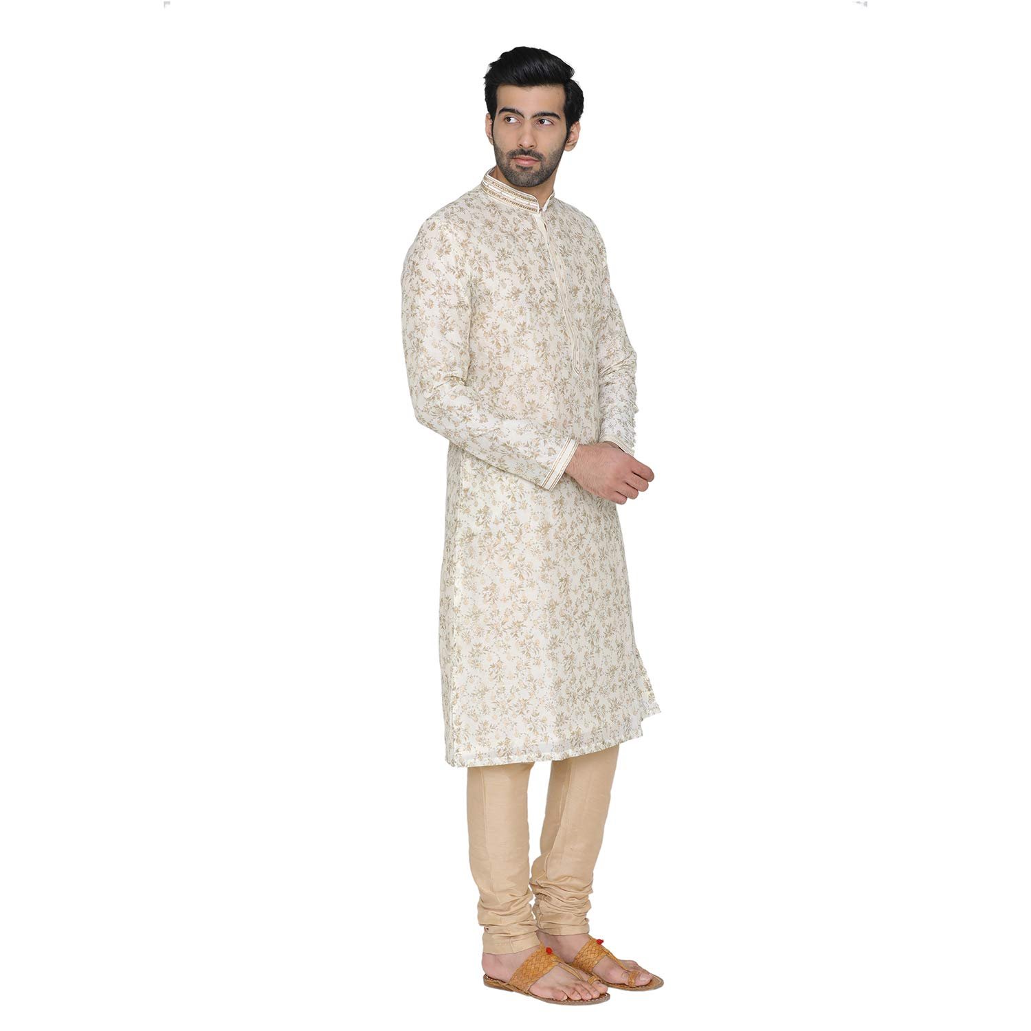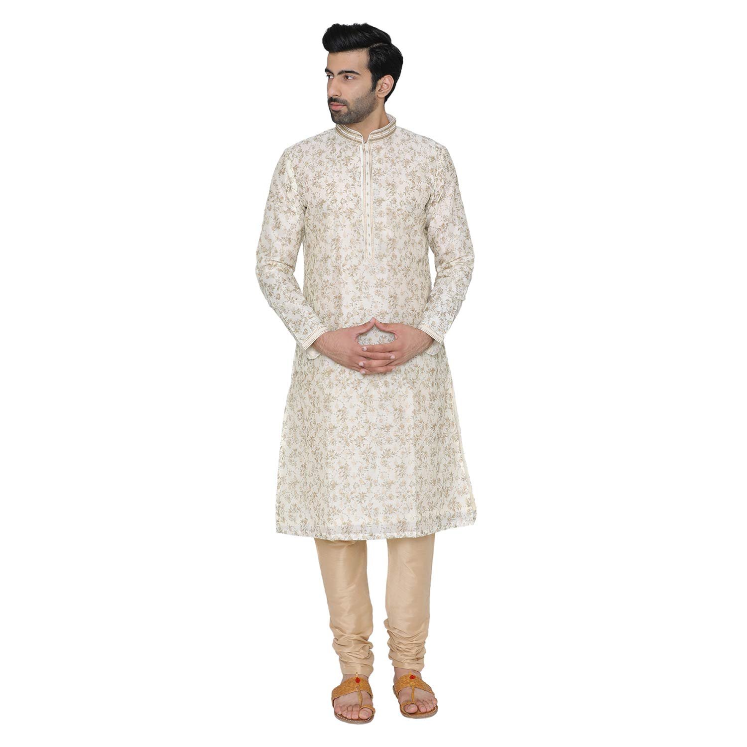 Manyavar Men’s Silk Kurta Pyjama (SOSK343_Cream_Medium)