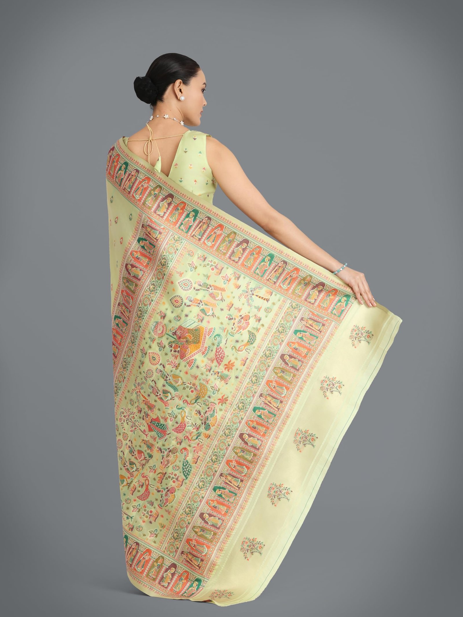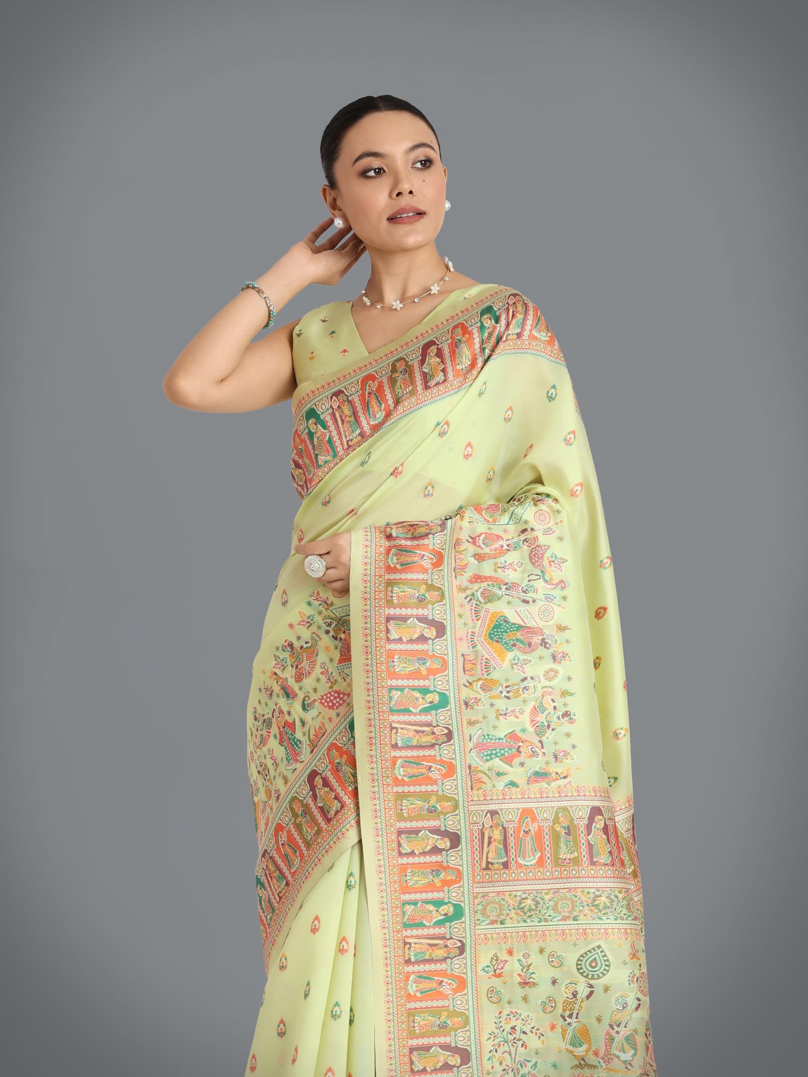 - Product Highlights : Fabric: Pashmina Silk (Saree & Blouse) || Work: Zari Woven Work (Saree), Woven (Blouse) || Colour: Saree –Pista Green | Blouse – Pista Green || This Saree is ideal for transitional seasons and sophisticated occasions.
