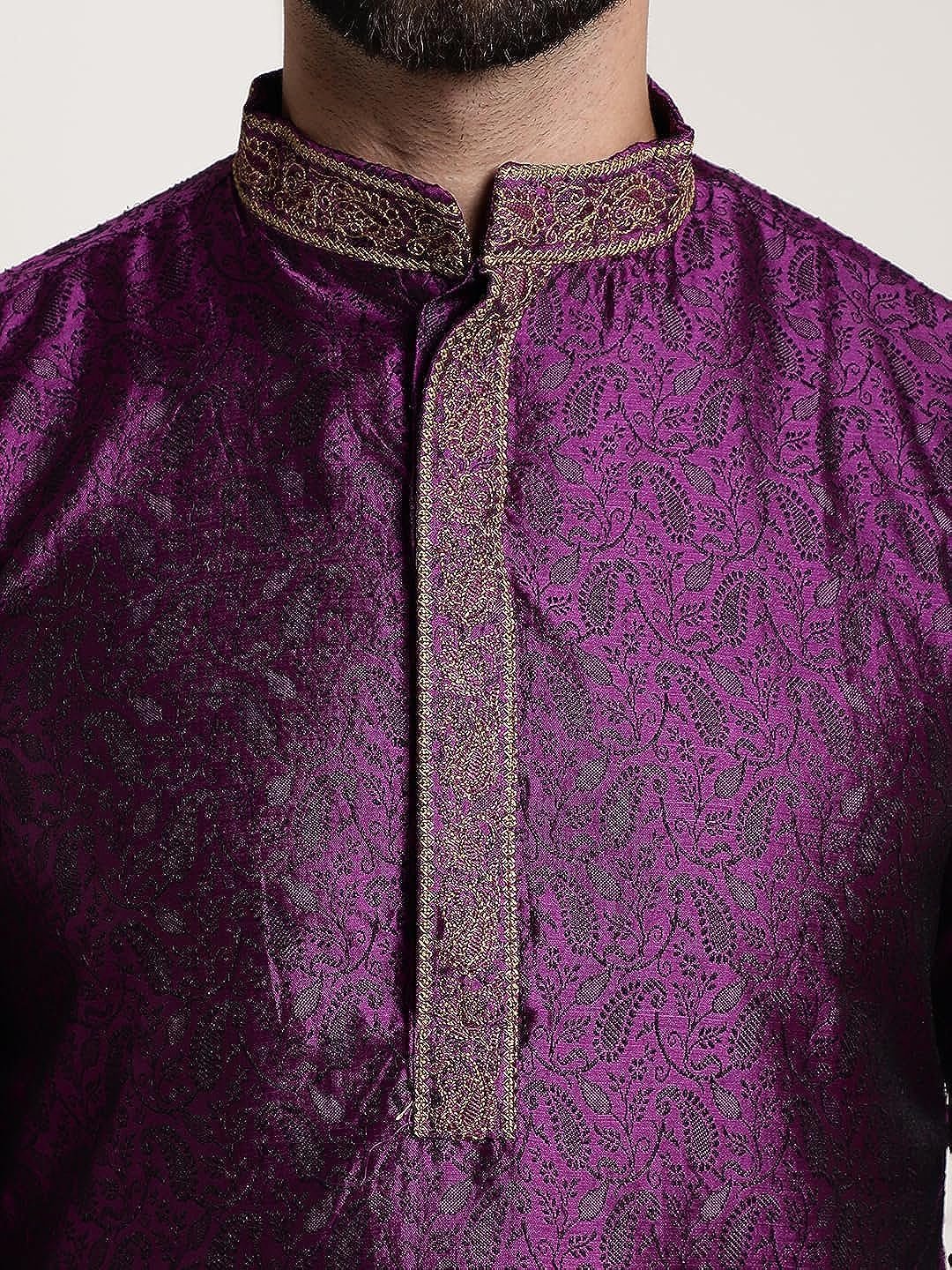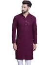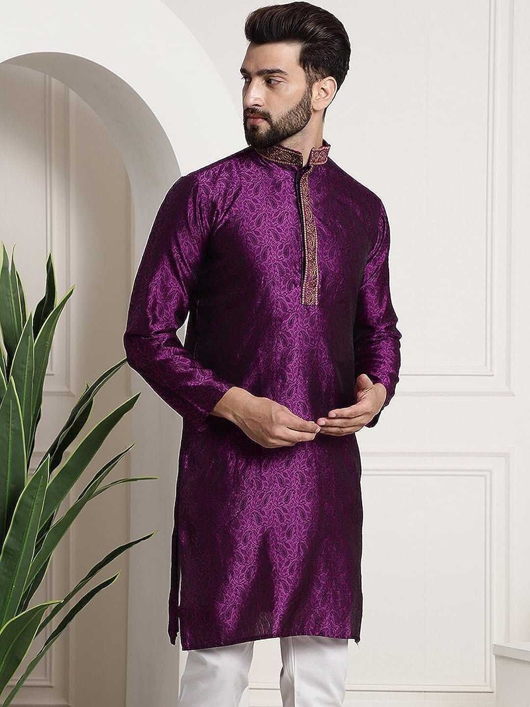 Royal Kurta Men’s Silk Blend Black Color only Long Kurta with Neck Embroidery (40, Purple)