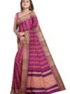Step into our admirable style of chanderi lavender saree, featured with ethnic motifs print, which has a jacquard weave with tassels and zari border. This fancy saree comes with unstitched printed blouse, that can be designed of your choice. This jacquard saree for ladies is perfect for attending evening functions, religious occasions, or a festive celebration, which can be a part of every woman’s wardrobe.