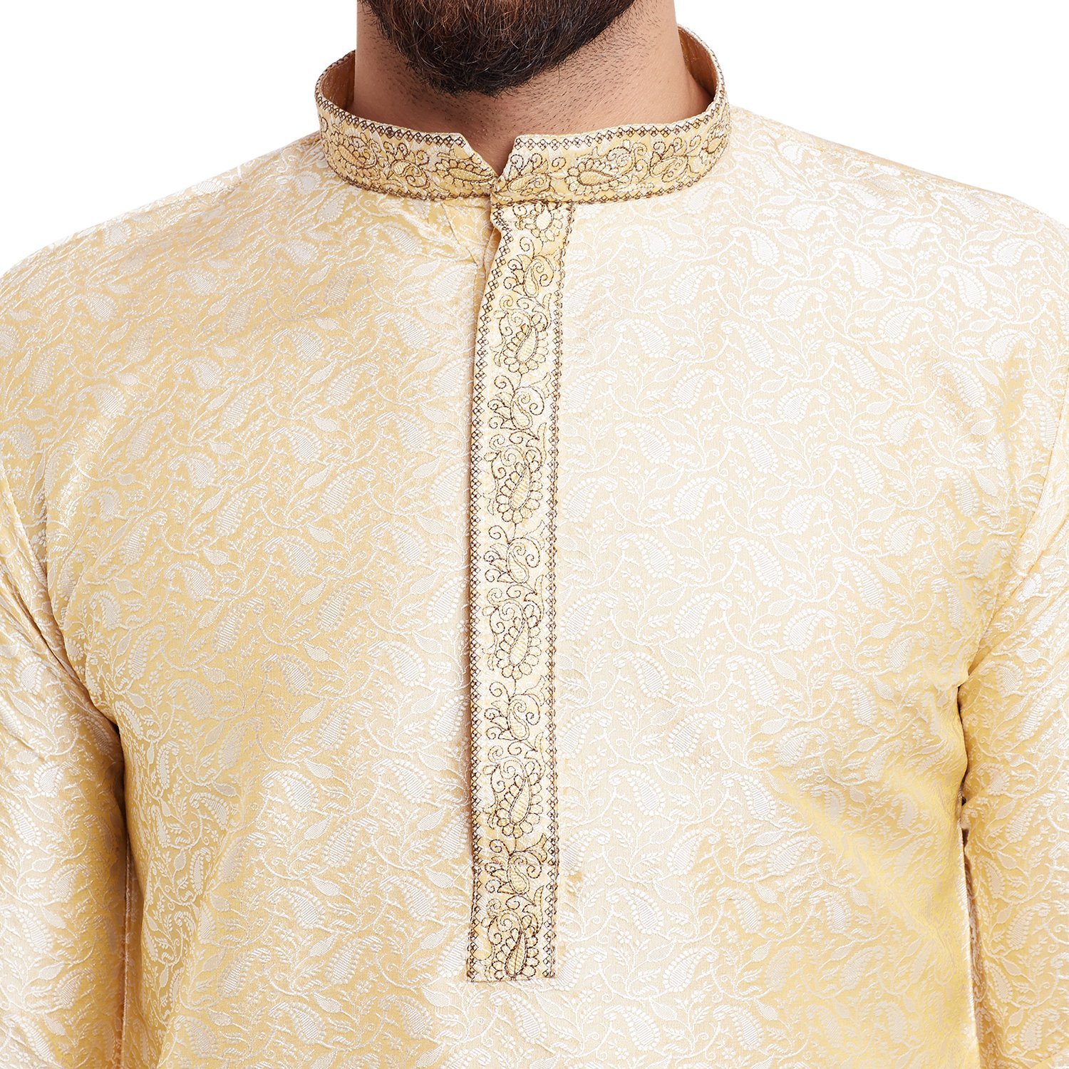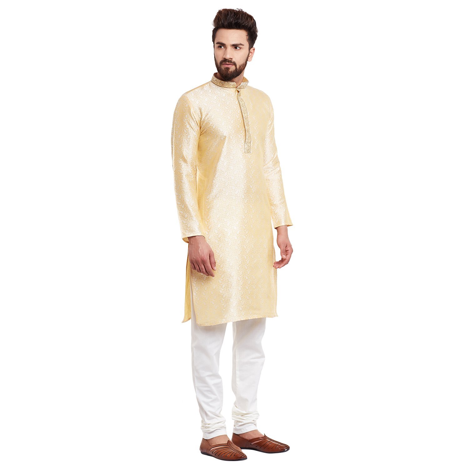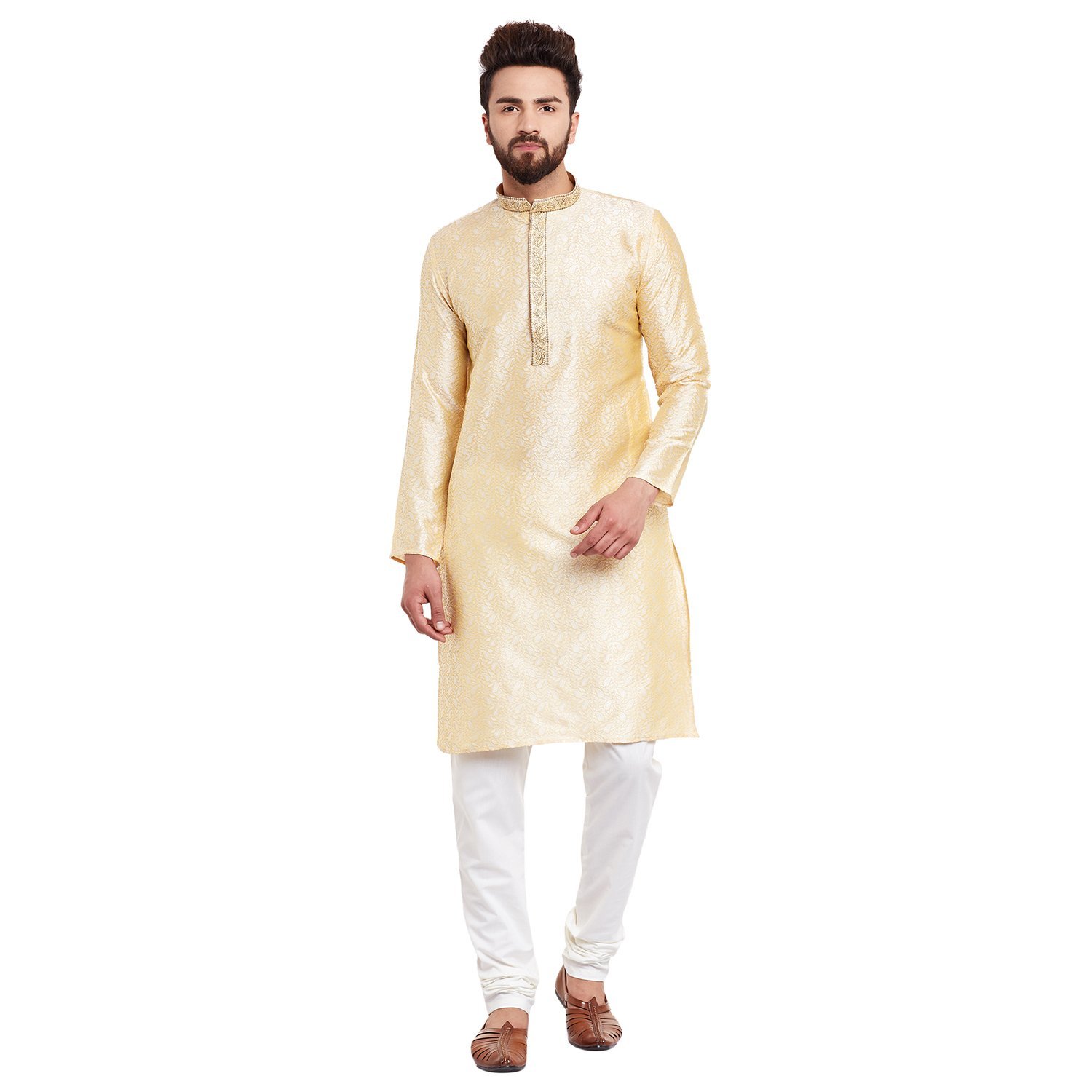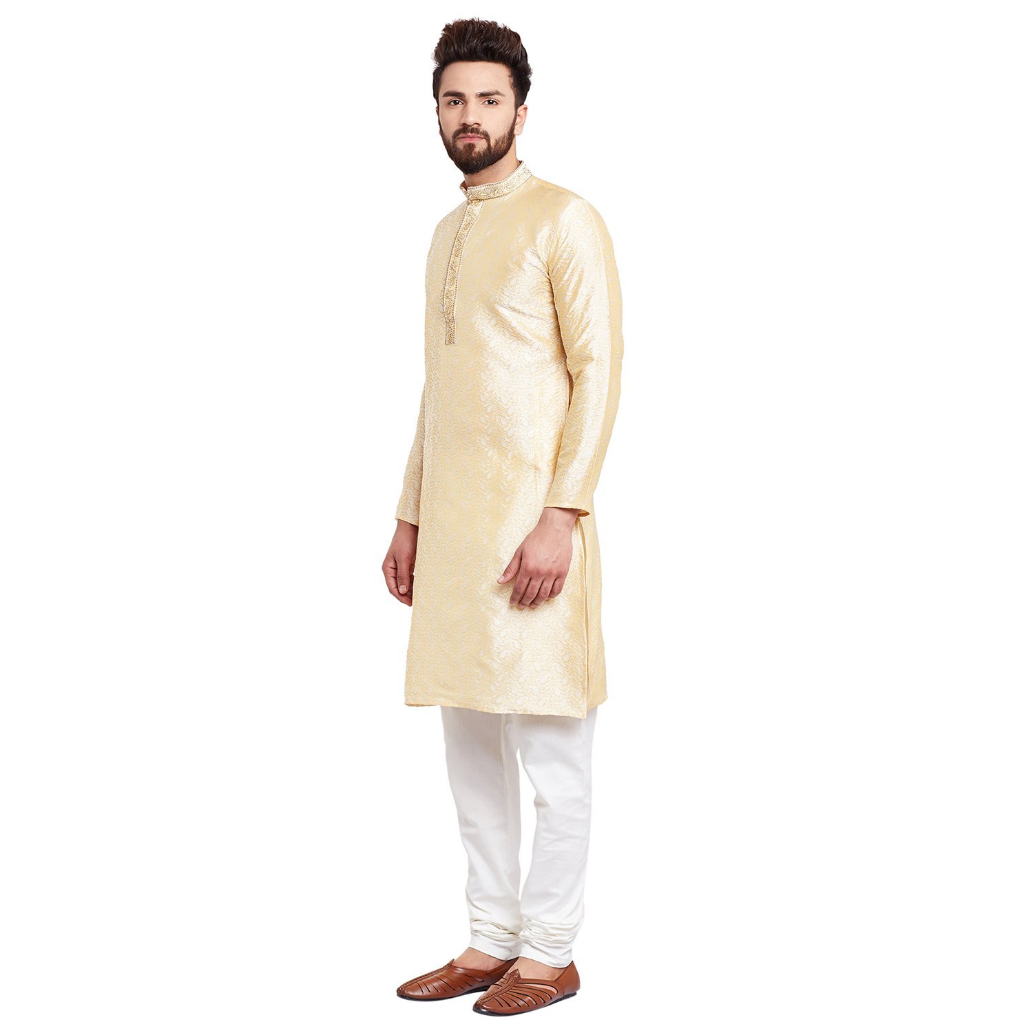 SOJANYA (Since 1958 Men’s Golden Bronze Jacquard Silk Kurta & Churidaar Pyjama
