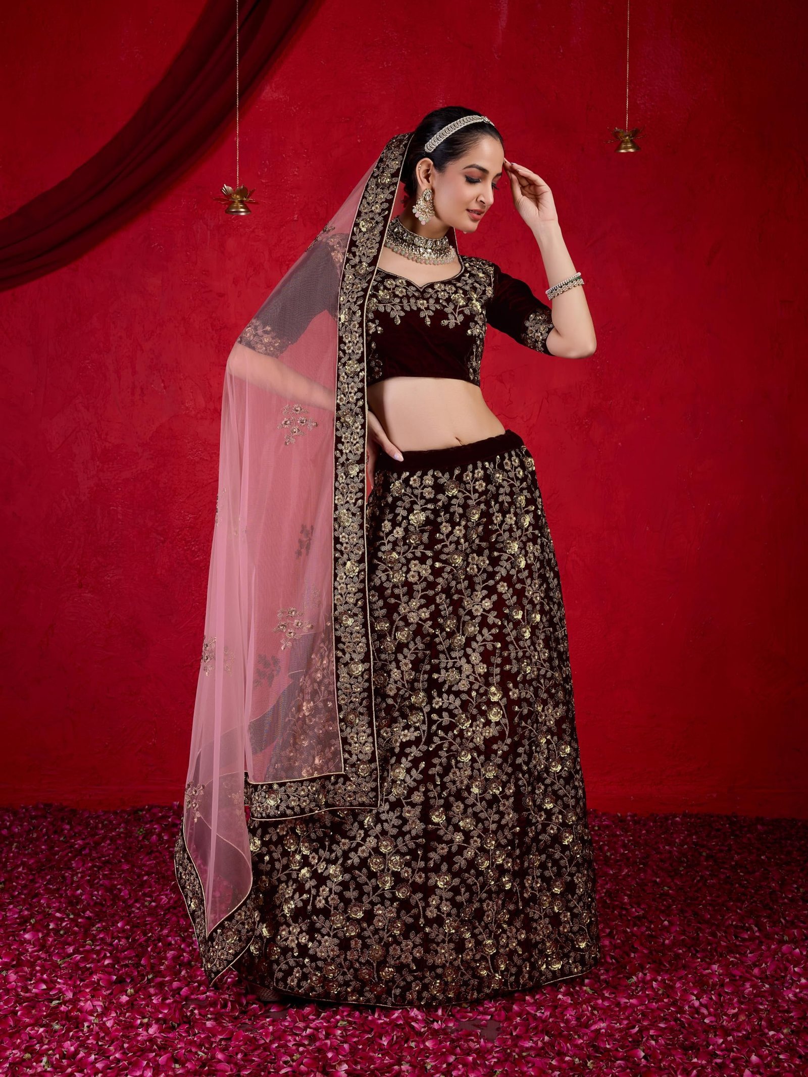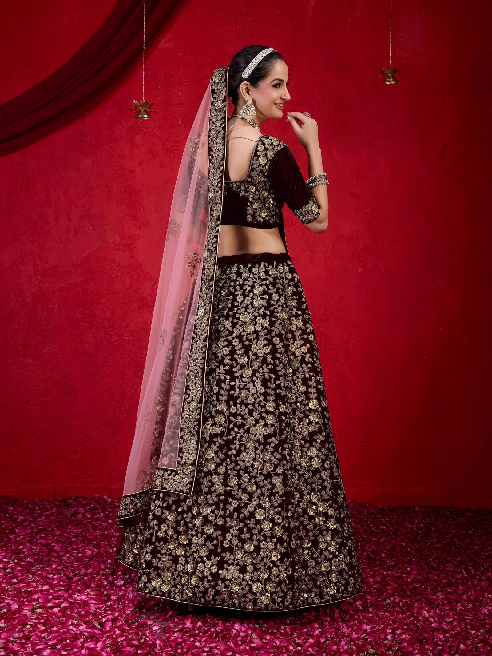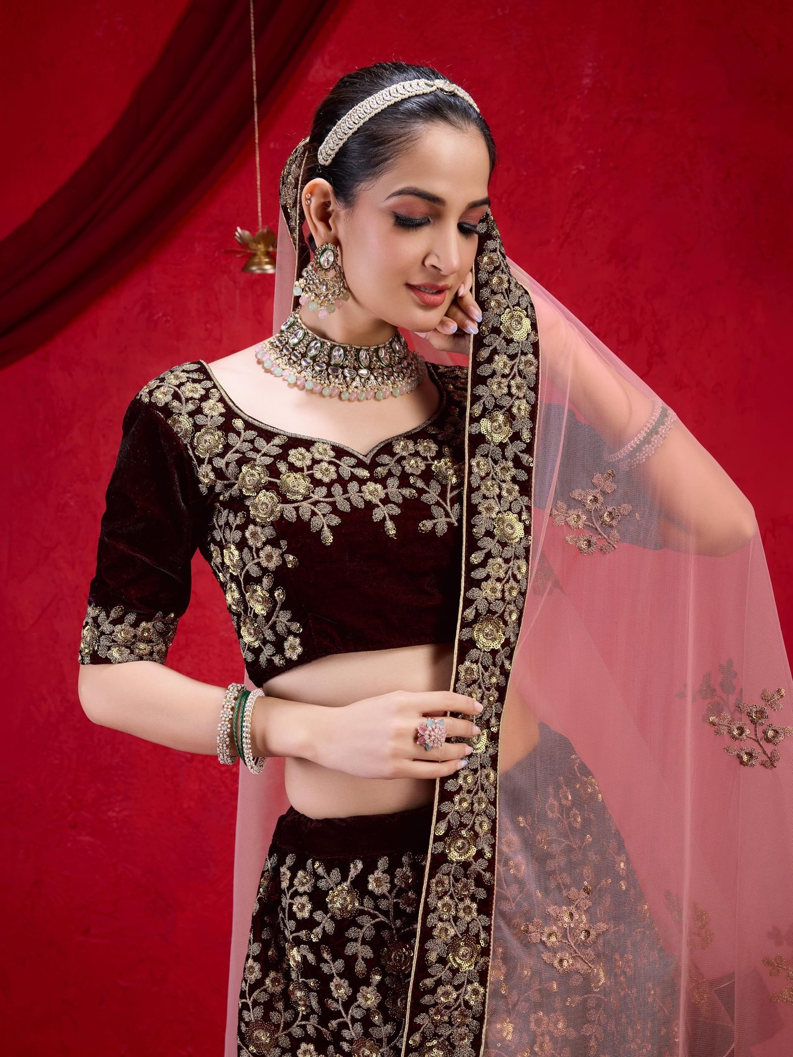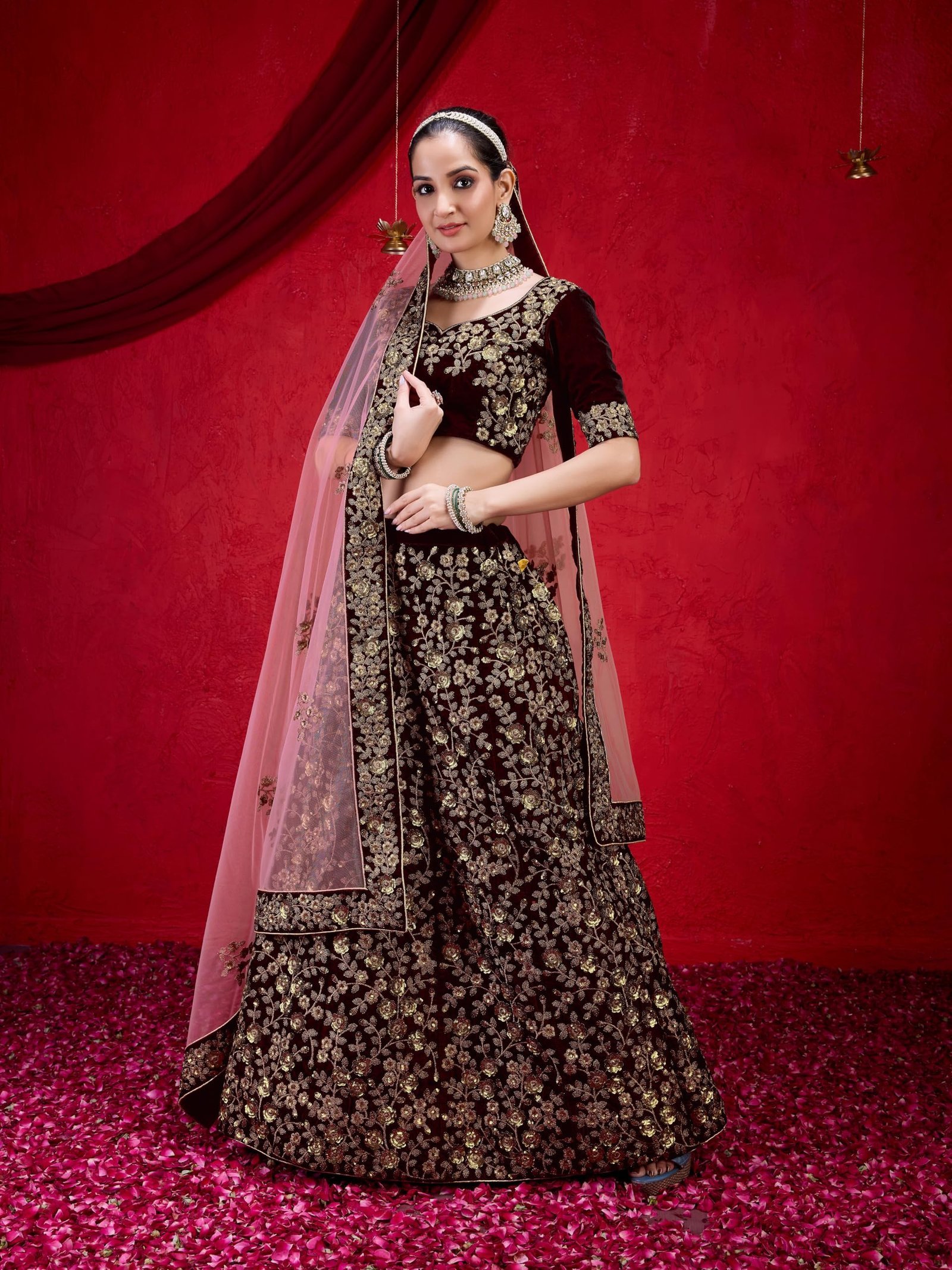 • Material: Lehenga Choli: Velvet; Dupatta: Net; Inner: Micro Satin