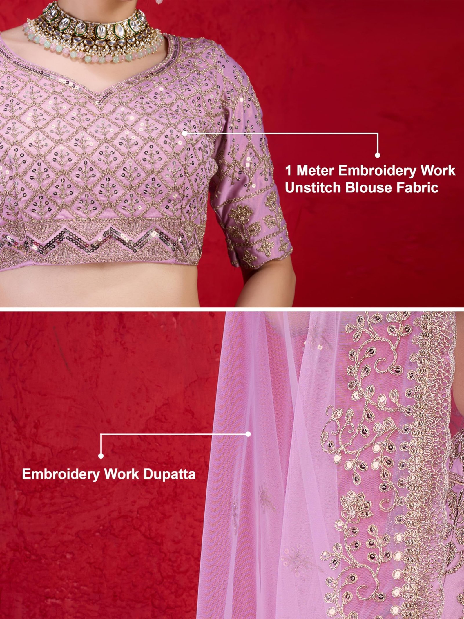 TRENDMALLS Women's Satin Embroidery Bridal Lehenga Choli With Net Dupatta (L148-Pink, Semi stitched)