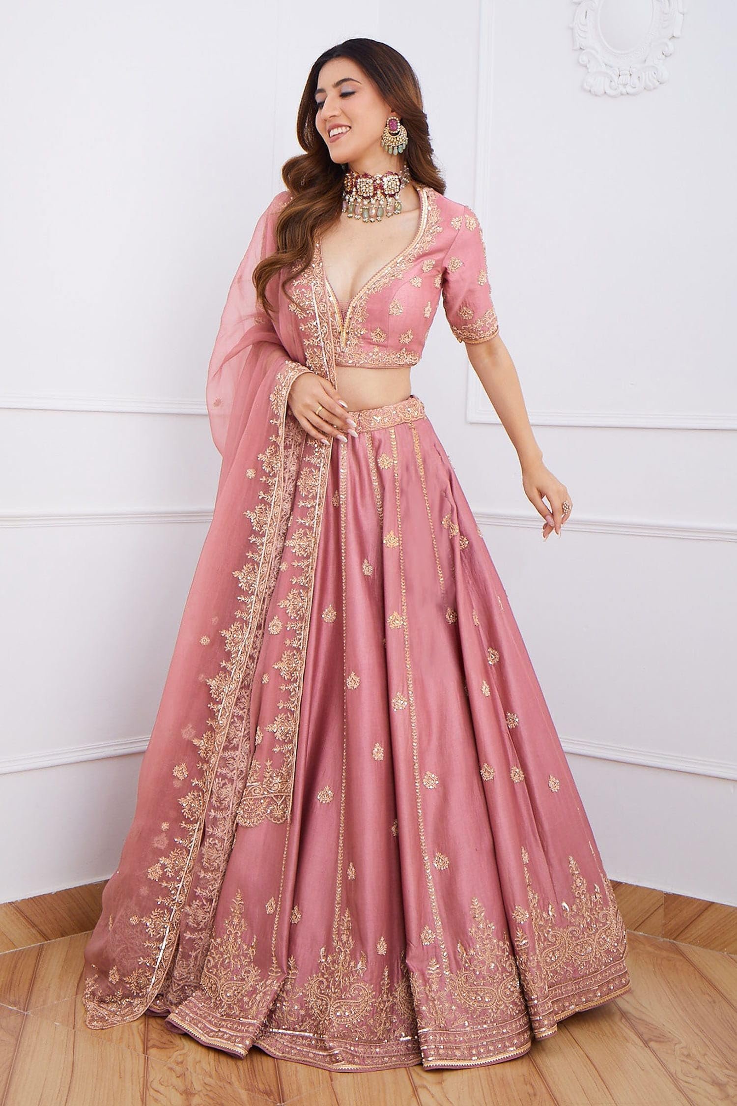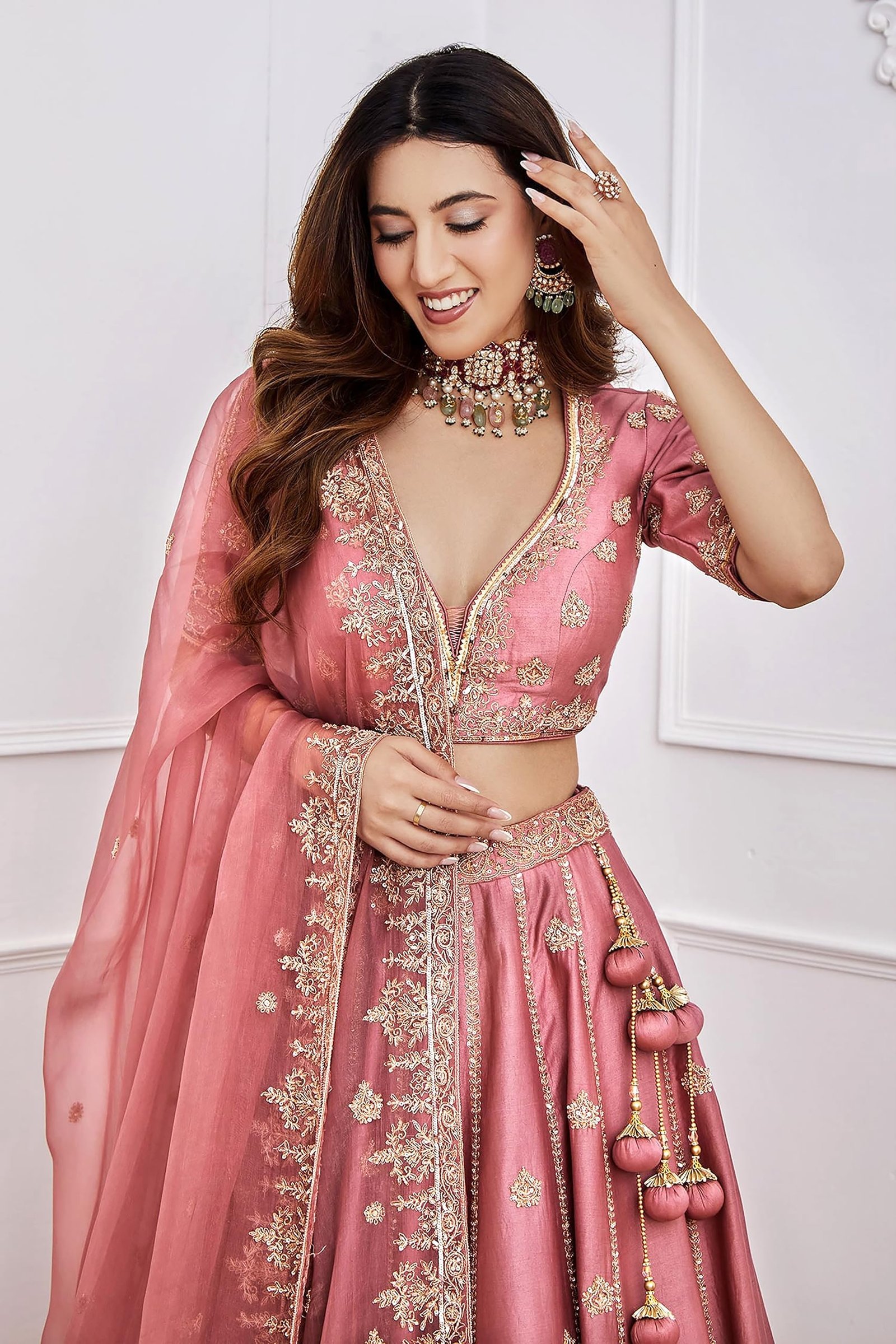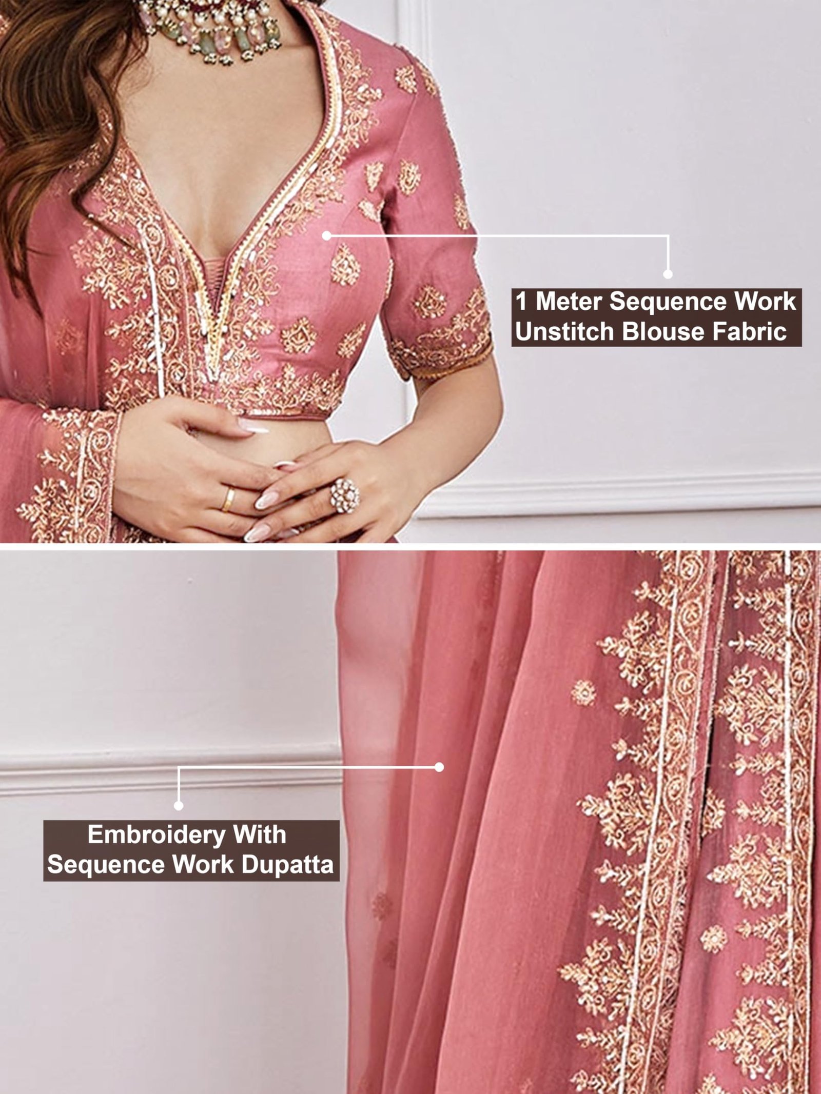- Color: Lehenga: Pink; Choli: Pink; Dupatta: Pink