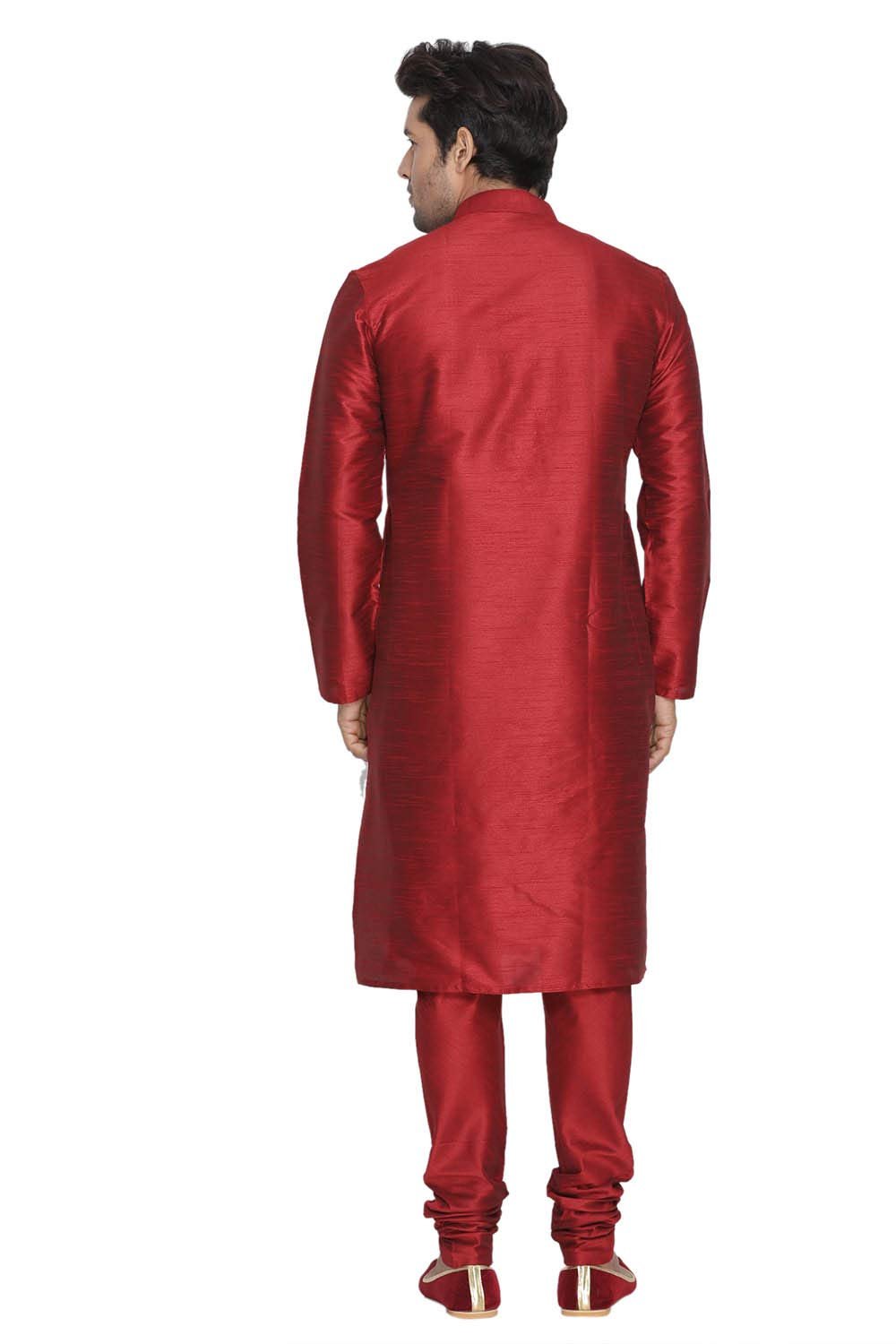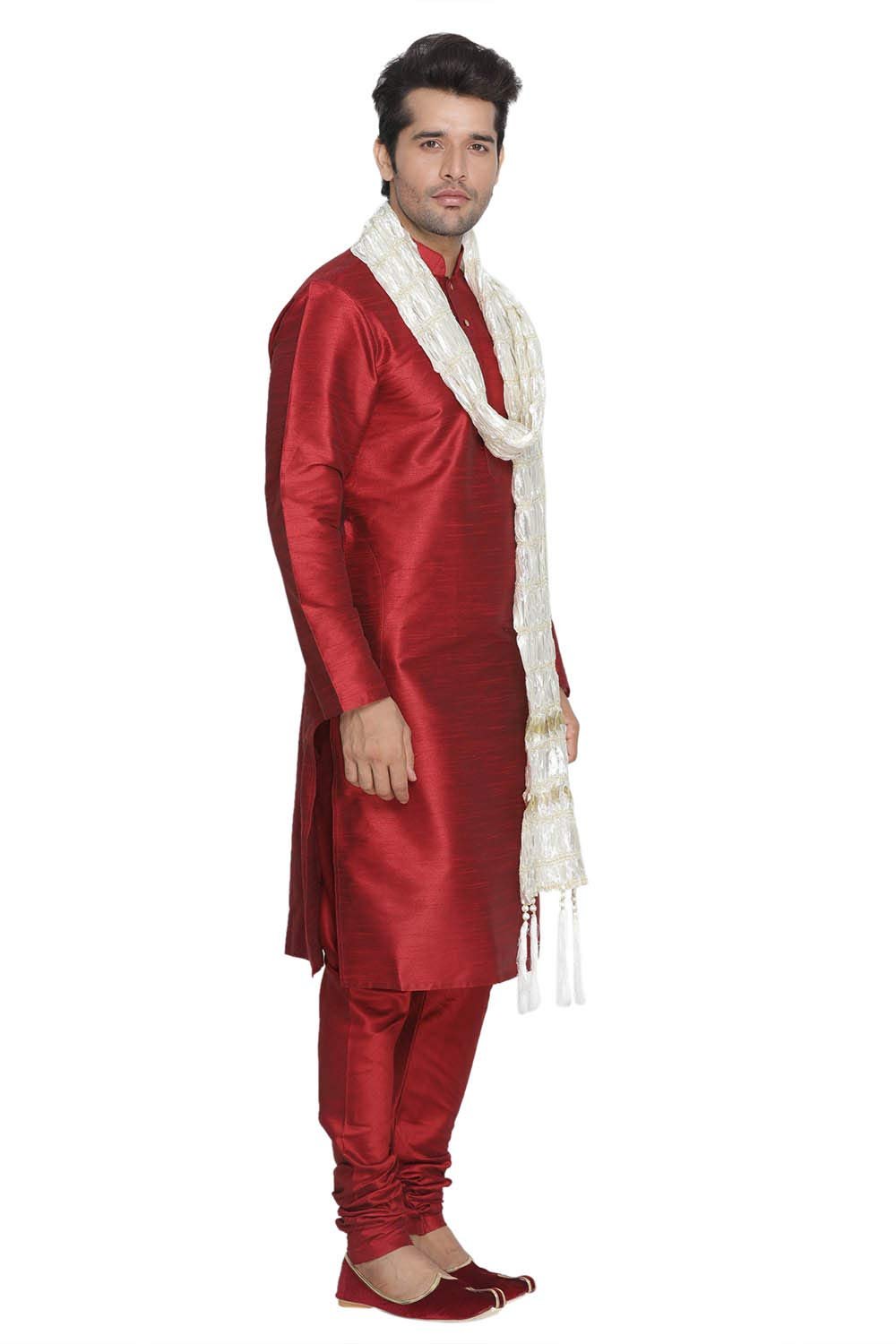 VASTRAMAY Men Maroon Cotton Silk Kurta Pyjama and Dupatta Set (VASMKMA001nPMAnD5WH_40)