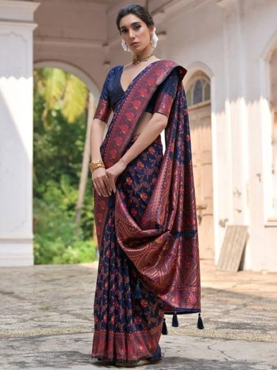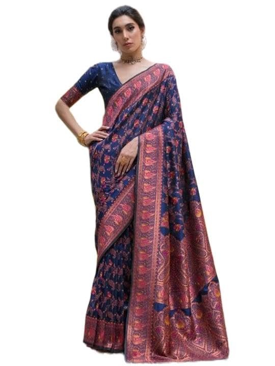 VISHNU WEAVES Woven Design Zari Pashmina Banarasi Saree | Traditional Indian Saree | Soft & Lightweight Fabric | Perfect for Festivals & Parties